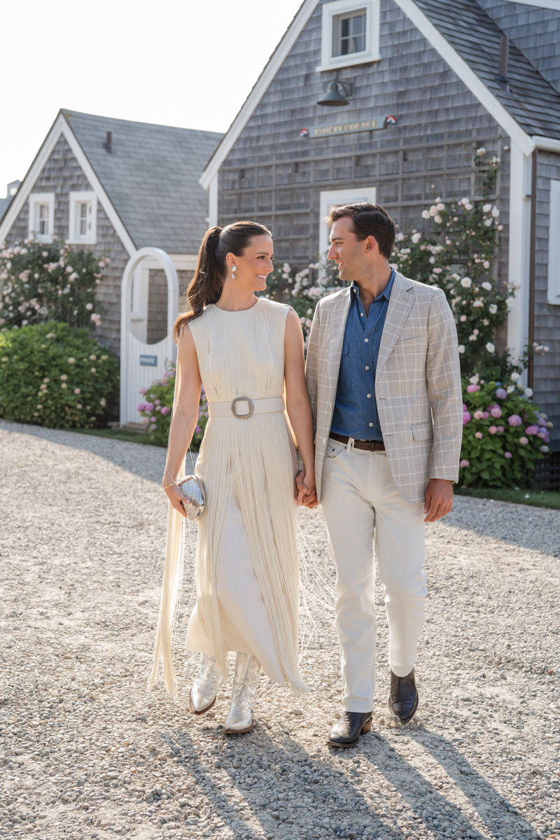 A Nantucket Welcome Party blended the groom’s Texas roots with the bride’s lifelong connection to Nantucket, this welcome party was the perfect fusion of coastal charm and Southern spirit—affectionately coined “NanTexas.” Guests embraced the theme wholeheartedly, arriving in their best Texas chic: think embroidered boots paired with breezy linens, wide-brimmed hats alongside Nantucket-blue sundresses. It was the ideal kickoff to a weekend that promised both style and heart.