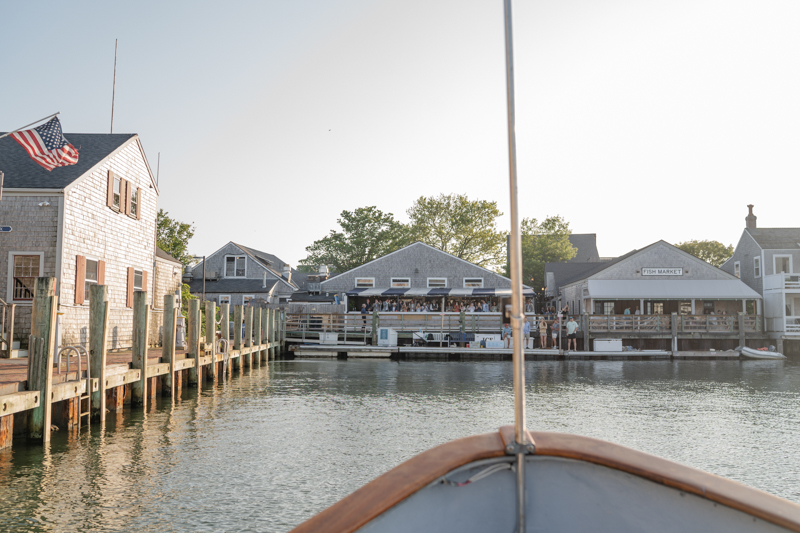 In true Nantucket style, the couple made their grand arrival by boat, cruising in across the harbor as their guests cheered from the dock. The wind, the salt air, the shimmer of early evening light—it all set the tone for a night that celebrated both where they came from and where they were headed together.