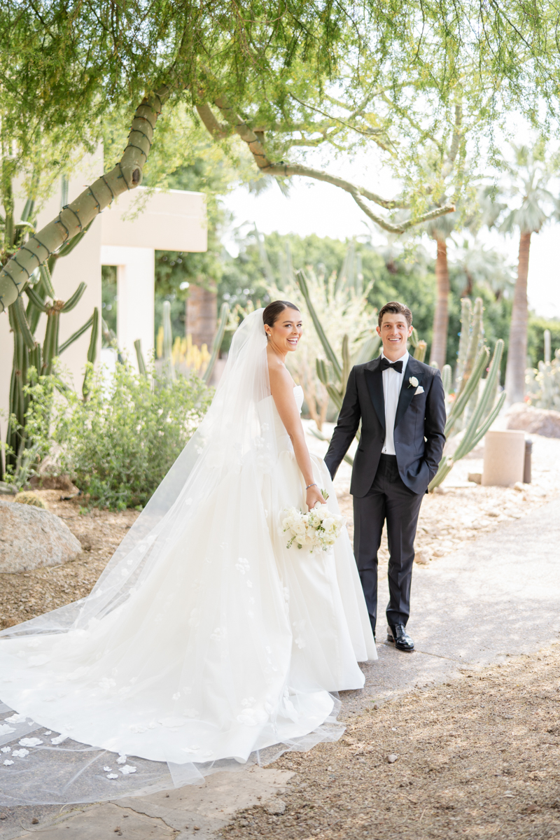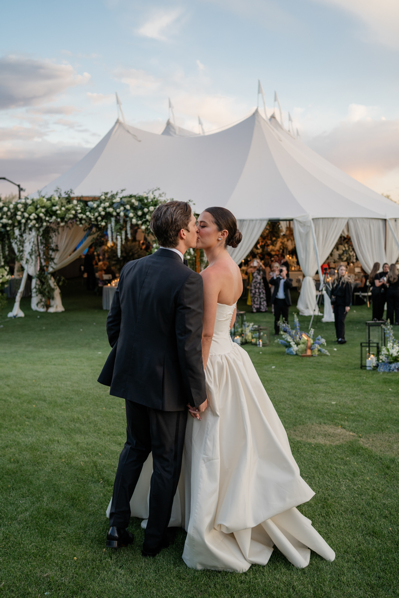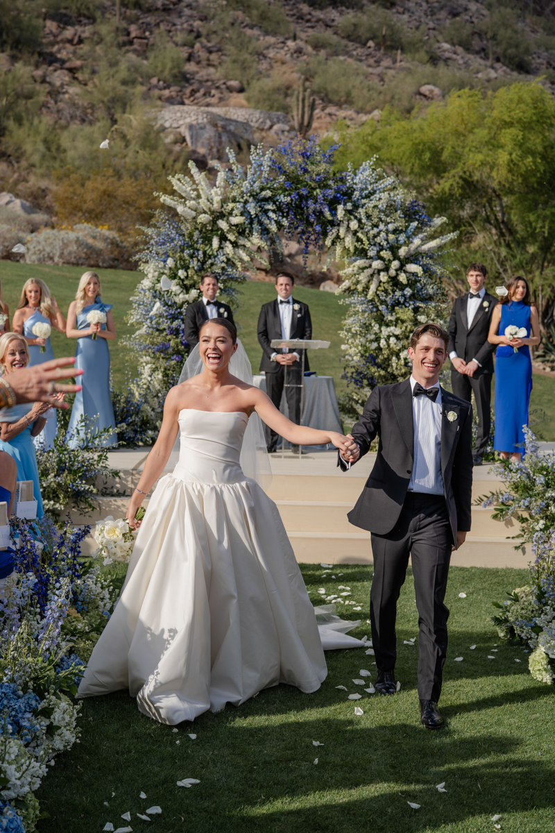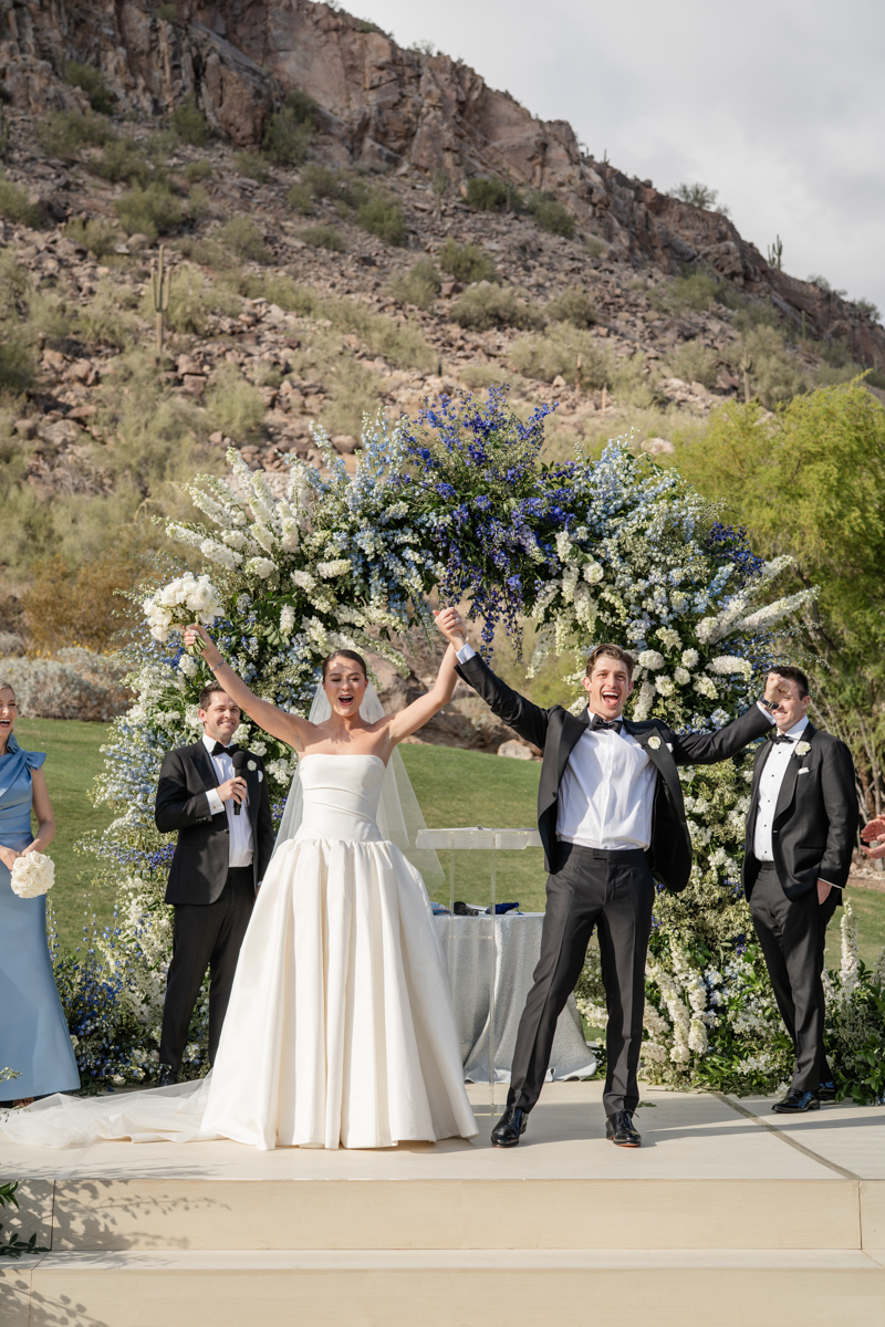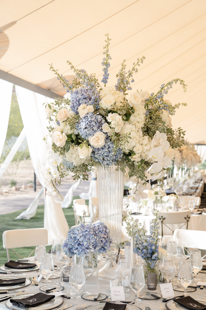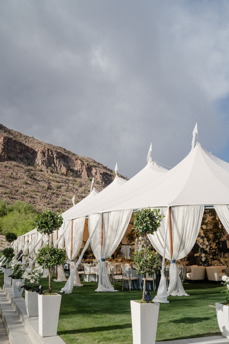 Tucked against the majestic backdrop of Camelback Mountain, The Phoenician played host to a wedding that felt more like a breeze off the Pacific than a celebration in the heart of the Arizona desert. With a color palette of soft coastal blues, lush florals, and sweeping tented elegance, this unforgettable day blended ocean-inspired serenity with the grandeur of one of Scottsdale’s most iconic luxury resorts.