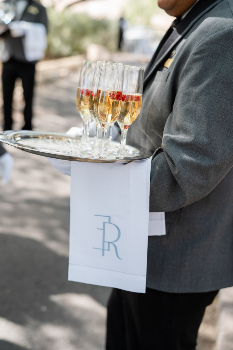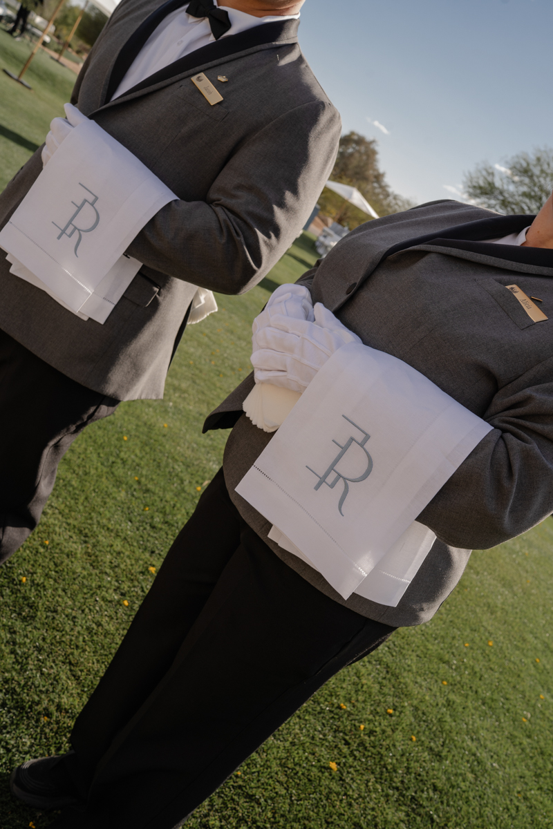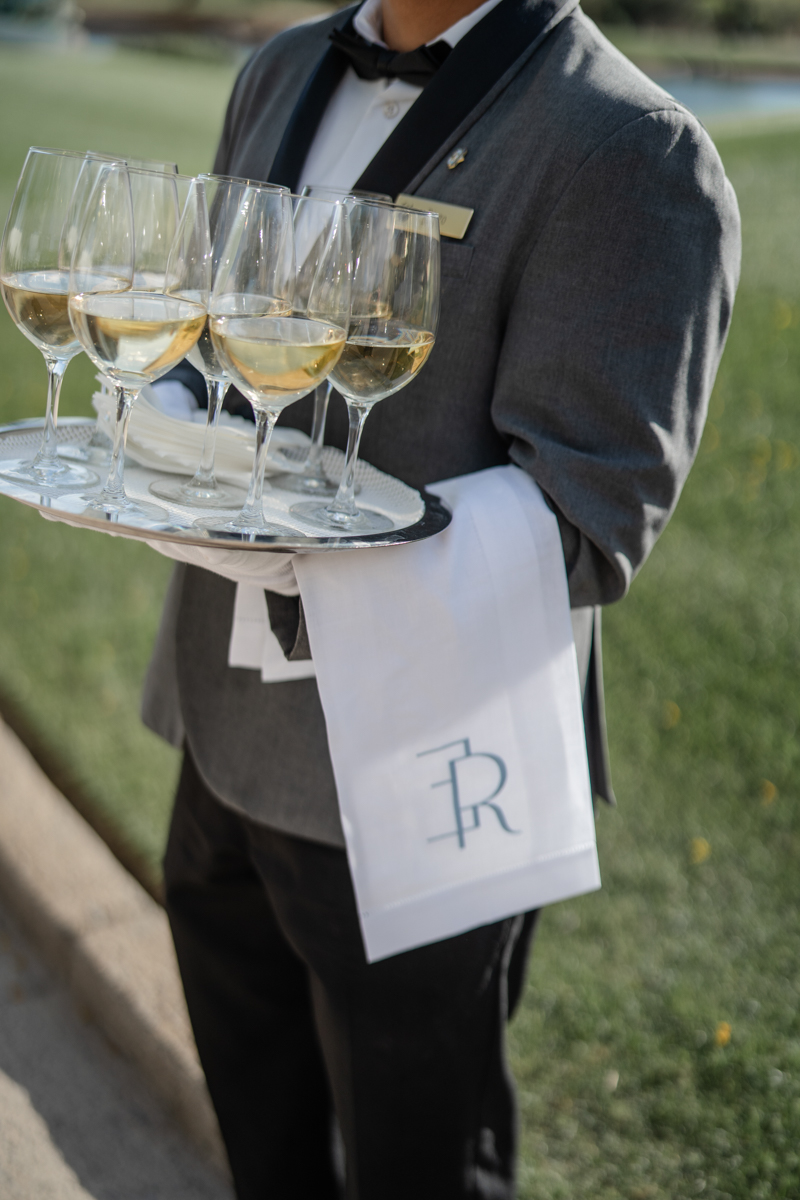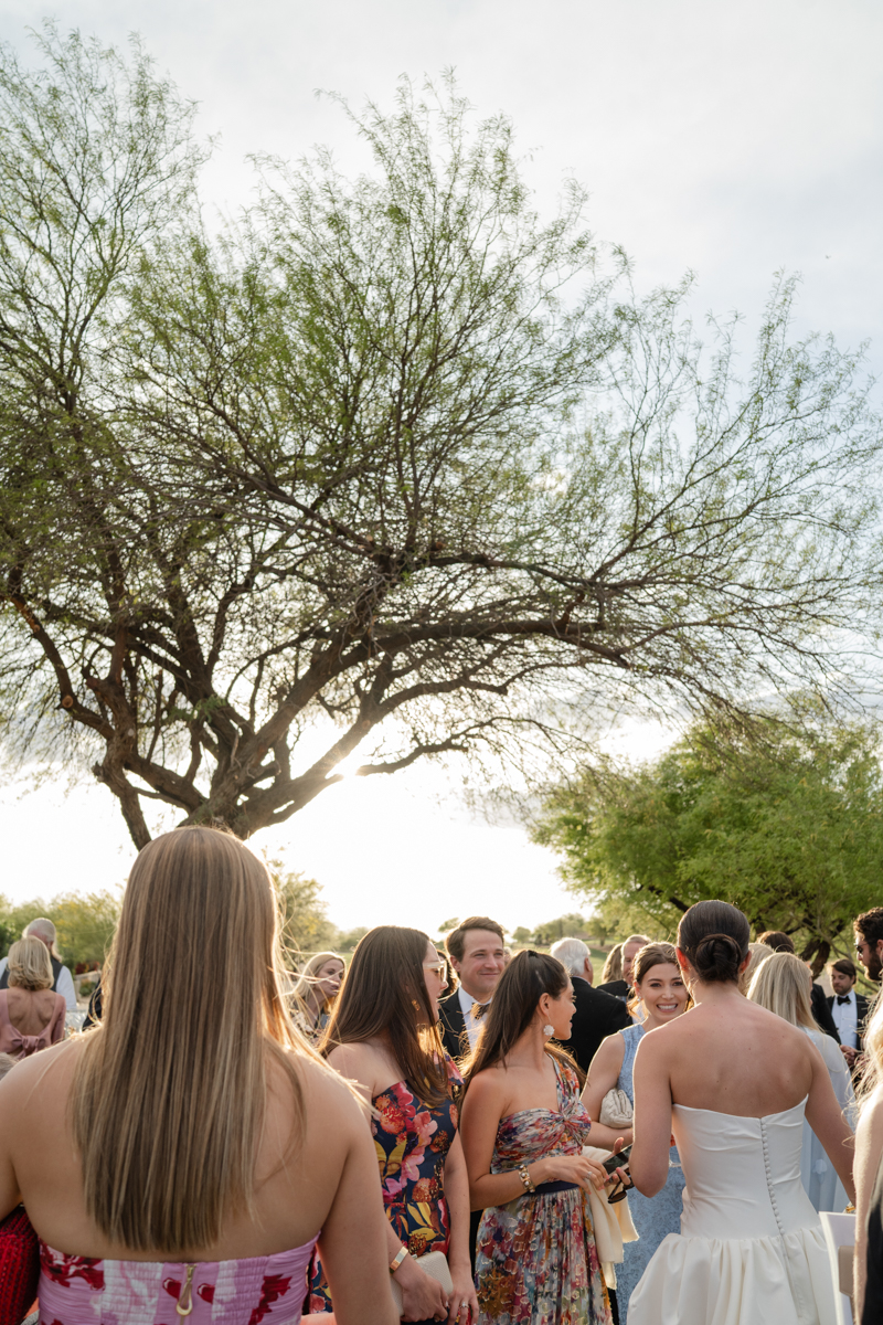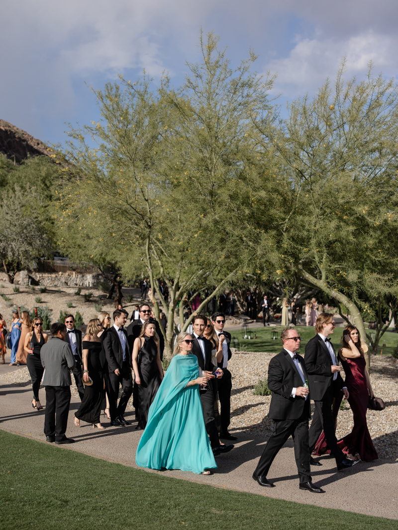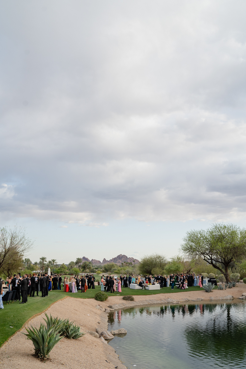 After the ceremony, guests were escorted to the 18th hole of The Phoenician’s championship golf course for a one-of-a-kind cocktail hour. With panoramic views of the valley and a soft desert breeze rolling in, this elevated location offered the perfect transition from “I do” to celebration.