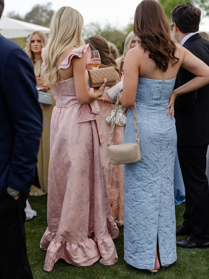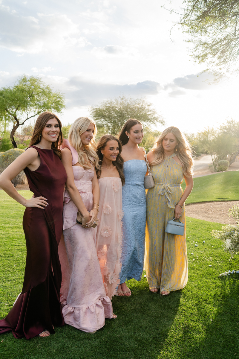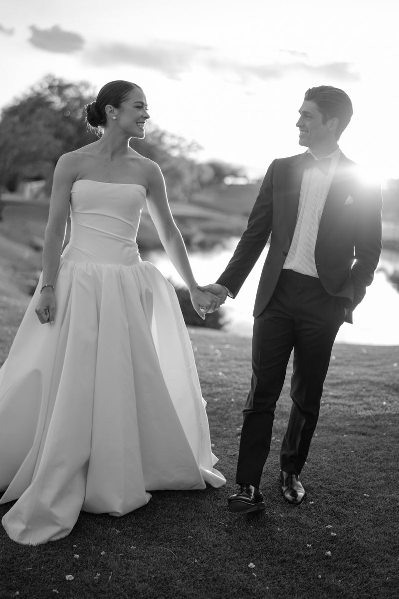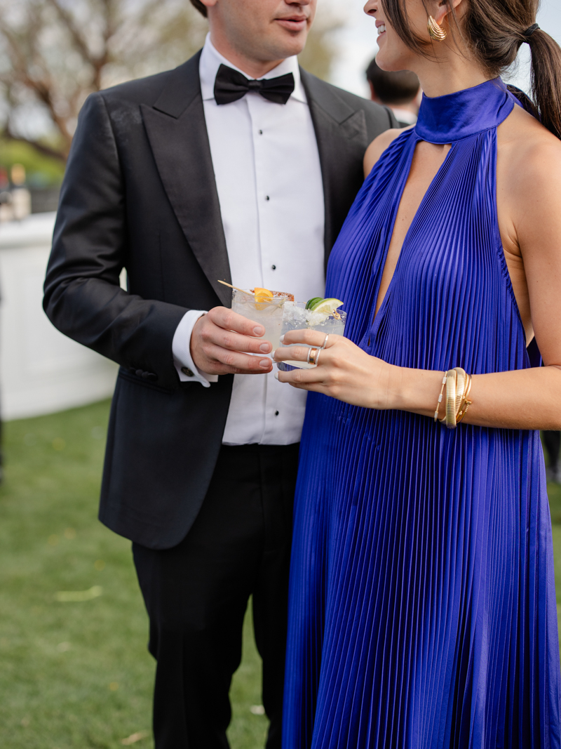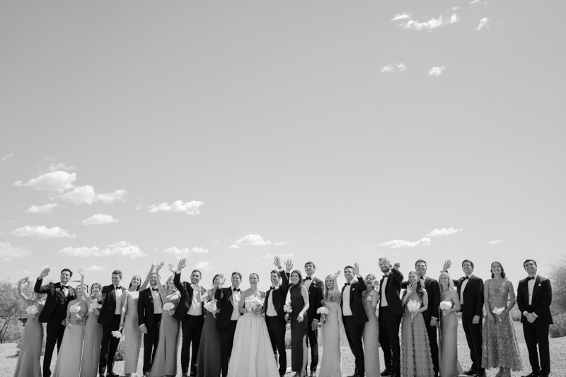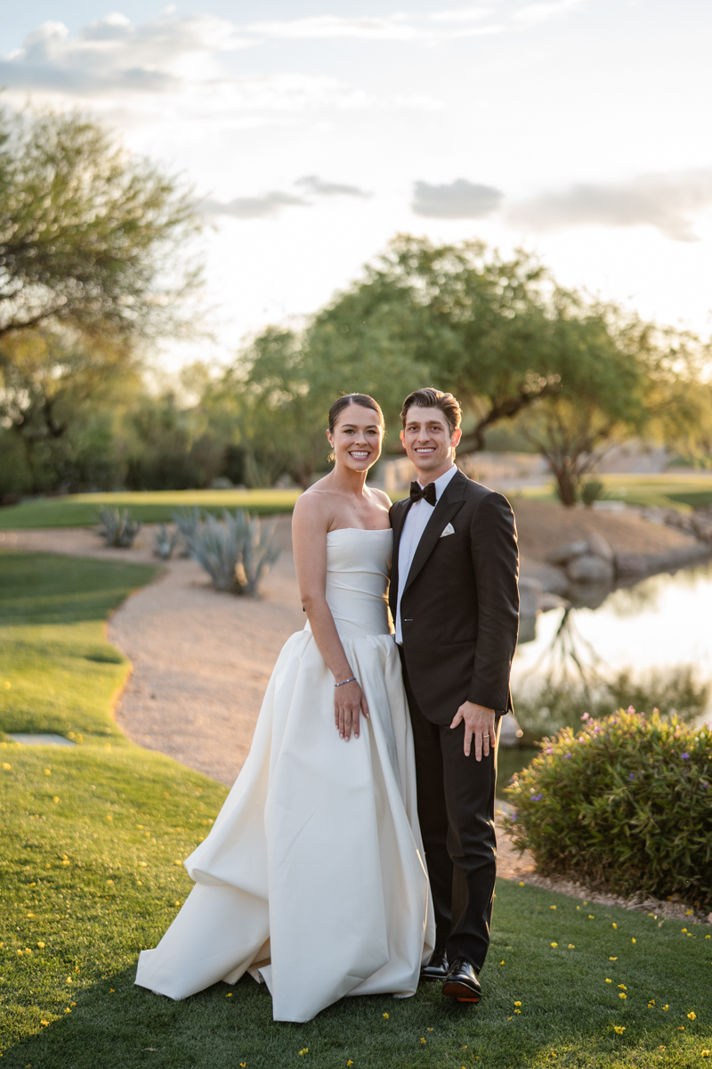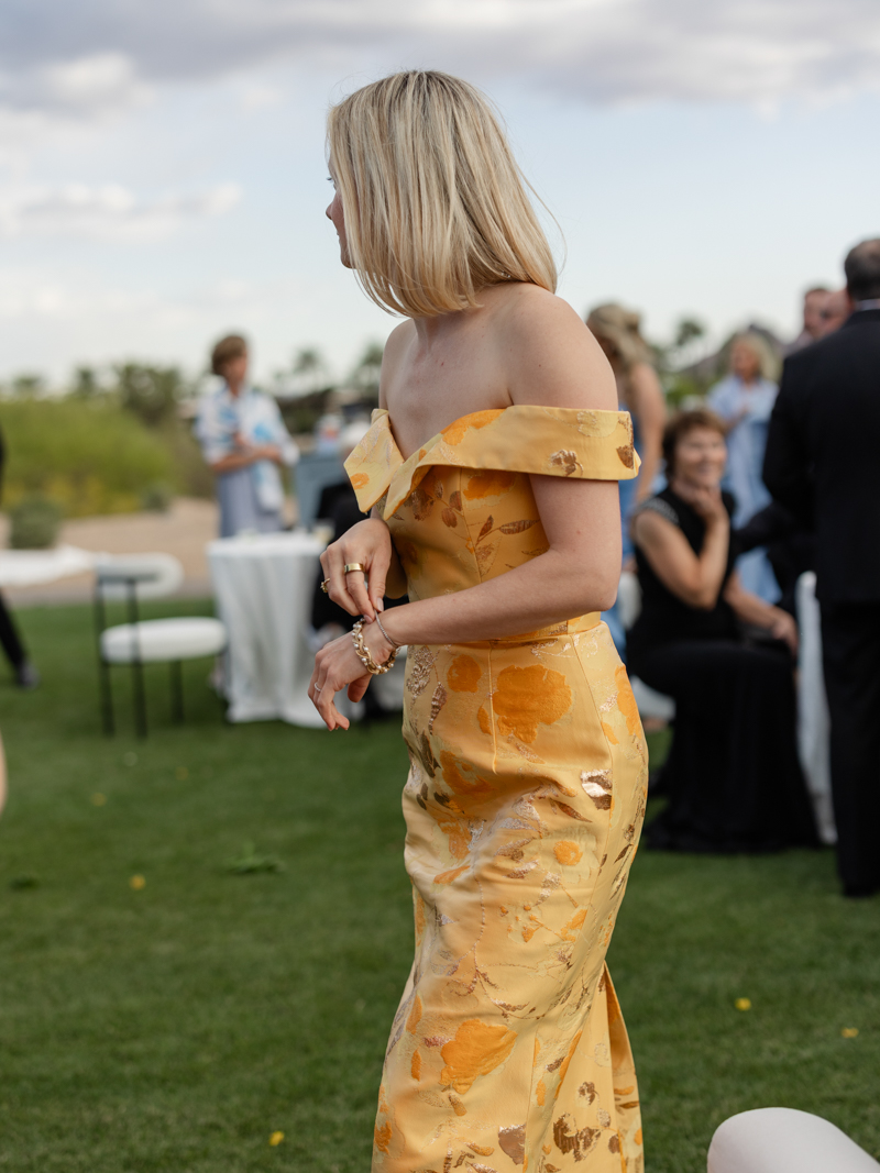 After the ceremony, guests were escorted to the 18th hole of The Phoenician’s championship golf course for a one-of-a-kind cocktail hour. With panoramic views of the valley and a soft desert breeze rolling in, this elevated location offered the perfect transition from “I do” to celebration.