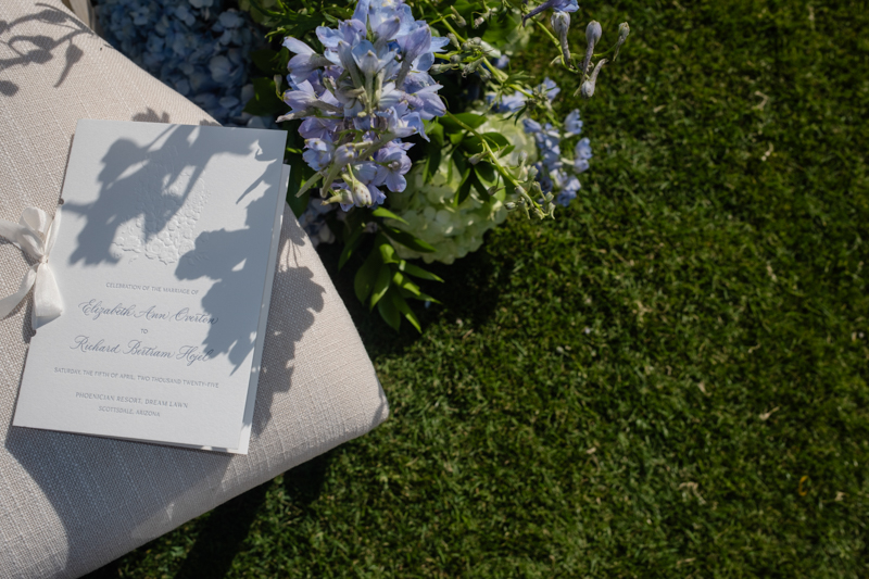 This wedding was a masterclass in blending contrast—cool blues with warm desert light, seaside inspiration with five-star Scottsdale luxury. The Phoenician offered the perfect setting: timeless, elegant, and flexible enough to bring even the most imaginative vision to life.